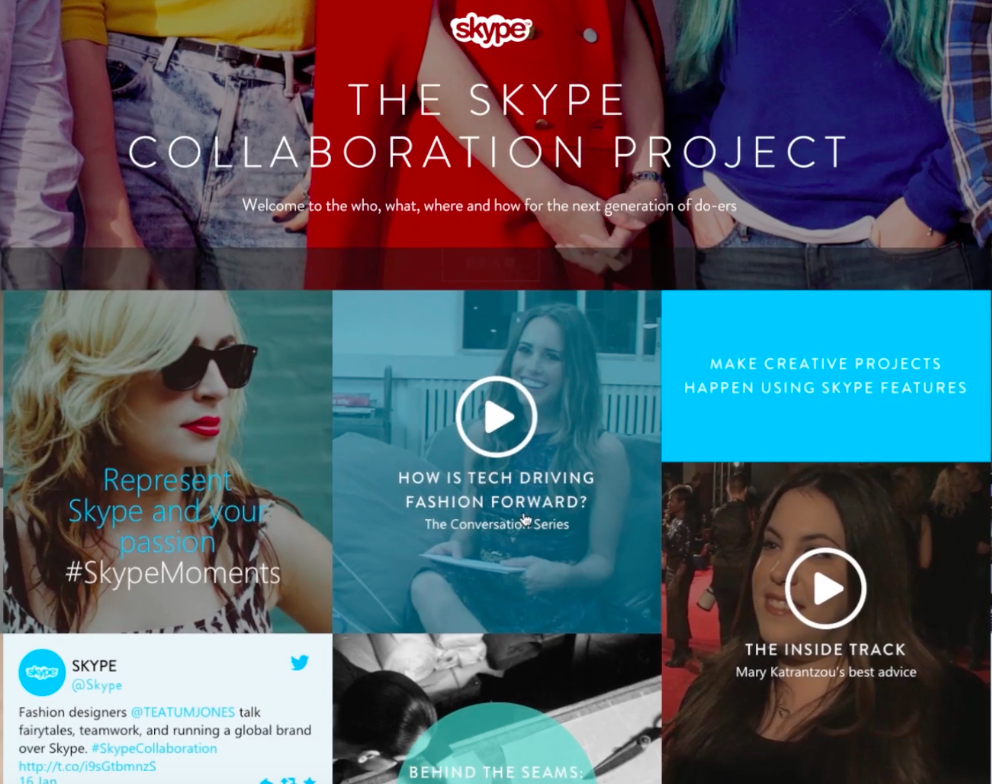 I was part of the editorial team on The Skype Collaboration Project – Skype’s new online editorial platform designed to empower and inspire a younger audience. It aimed to demonstrate how Skype’s range of lesser-known technology can help support young creatives and their ambitions in the fashion industry. I came up with editorial ideas, researched them and wrote them up into articles. I also interviewed influential fashion figure Jen Mankins and worked with up-and-coming photographer Jonnie Craig. After The Skype Collaboration Project was established as a credible editorial platform, it became the vehicle to tell Victoria Beckham’s story of her rise in the fashion world. All in all, the project gained 400 million social media impressions and the site had more than 4 million visitors!