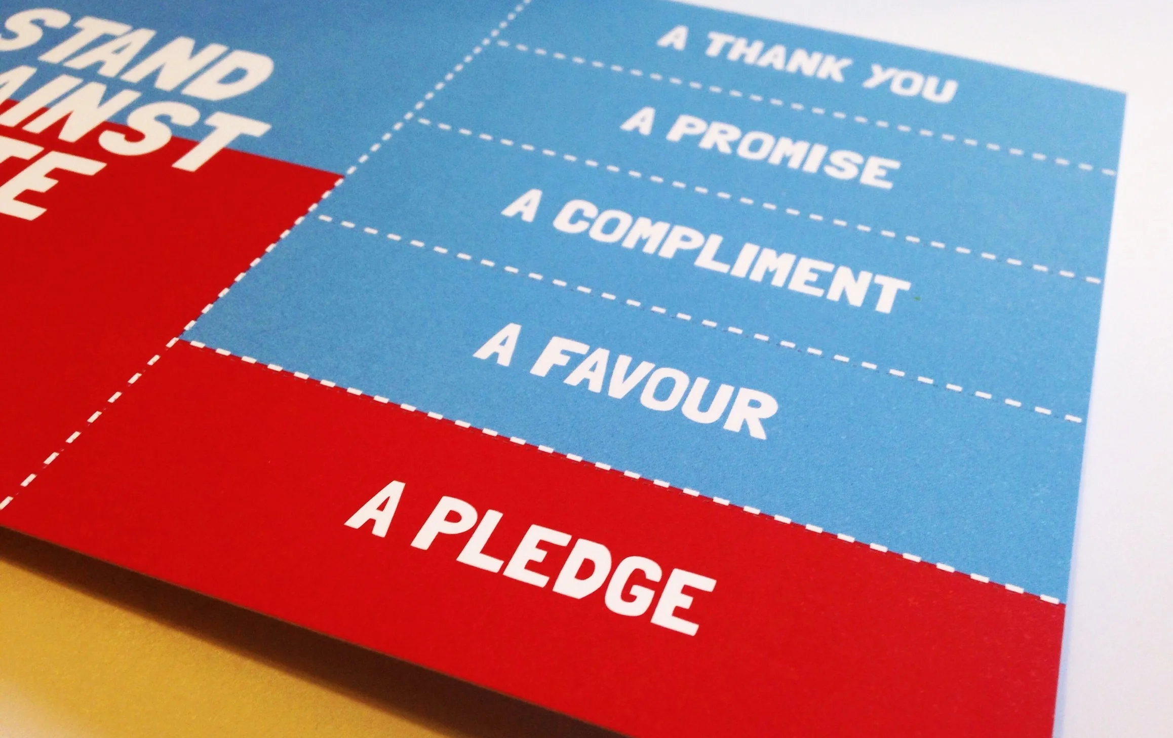 This brief came with an apology. Something along the lines of, “we’re so sorry, it’s a really small thing but we need you to write a postcard.” The postcard was for Mike Haines (brother of aid worker David Haines, who was murdered by so-called Islamic State terrorists). Mike wanted to leave young people with a reminder of his work to promote unity, tolerance and understanding in schools. I came up with the idea of a postcard that contained detachable ‘acts of kindness’ that pupils could write and pass on to each other. It gave Mike’s campaign legacy, but also helped young people carry on his message in their own words.